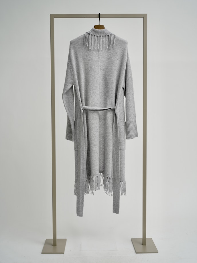Lange Strickjacke mit Fransen und Bindegürtel