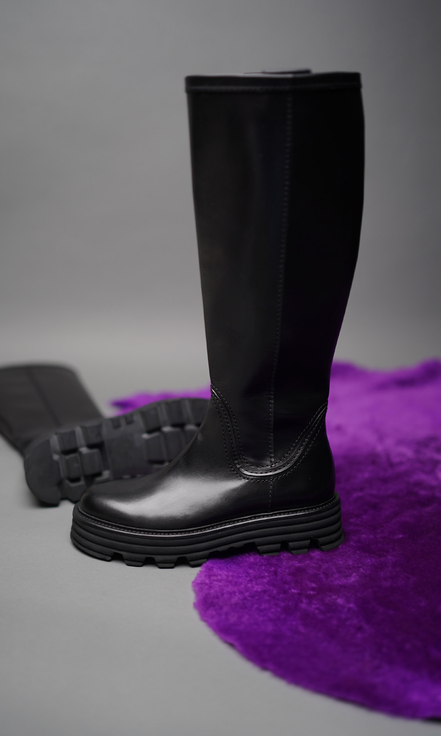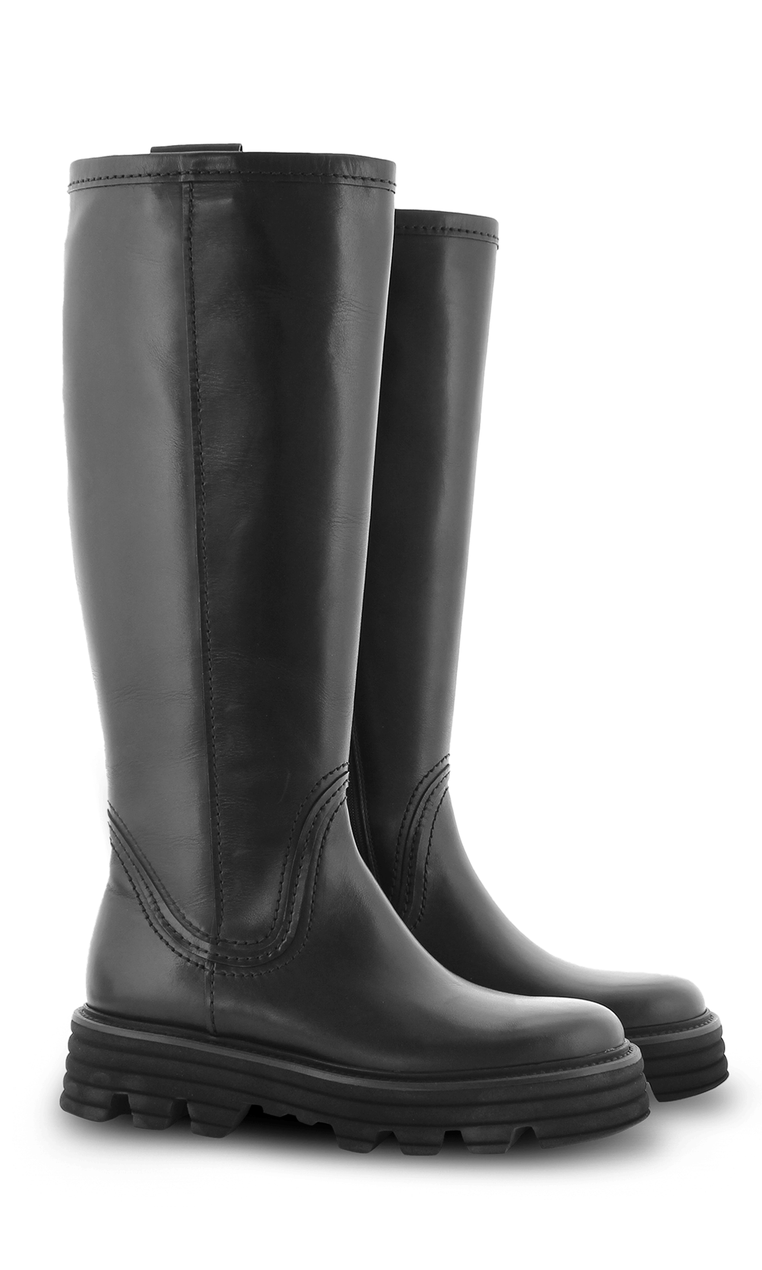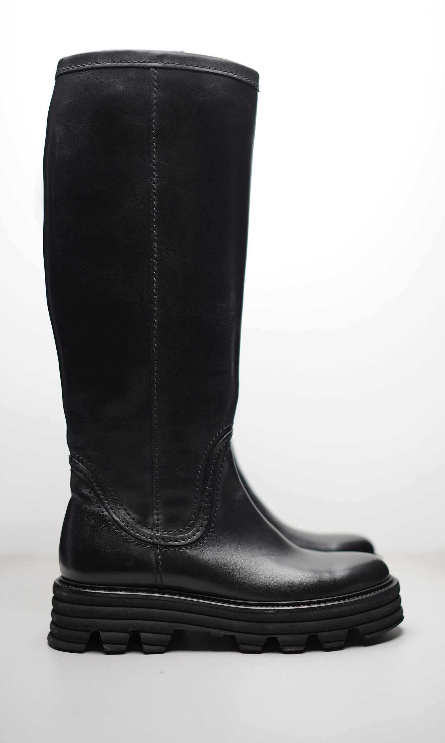 Stiefel mit derber Sohle, innen mit langem Reißverschluß, etwas weiterer Schaft