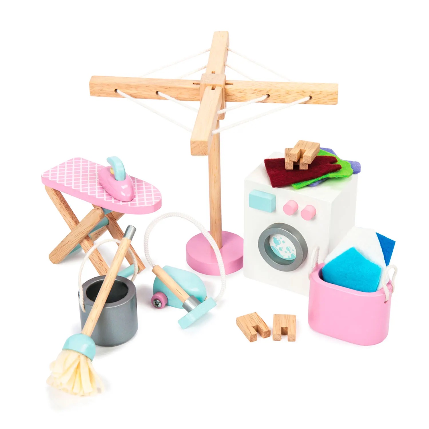 Waschküche für`s Puppenhaus, besteht aus 17 Teilen (Waschmaschine, Bügeleisen und -brett, Wäscheleine...)