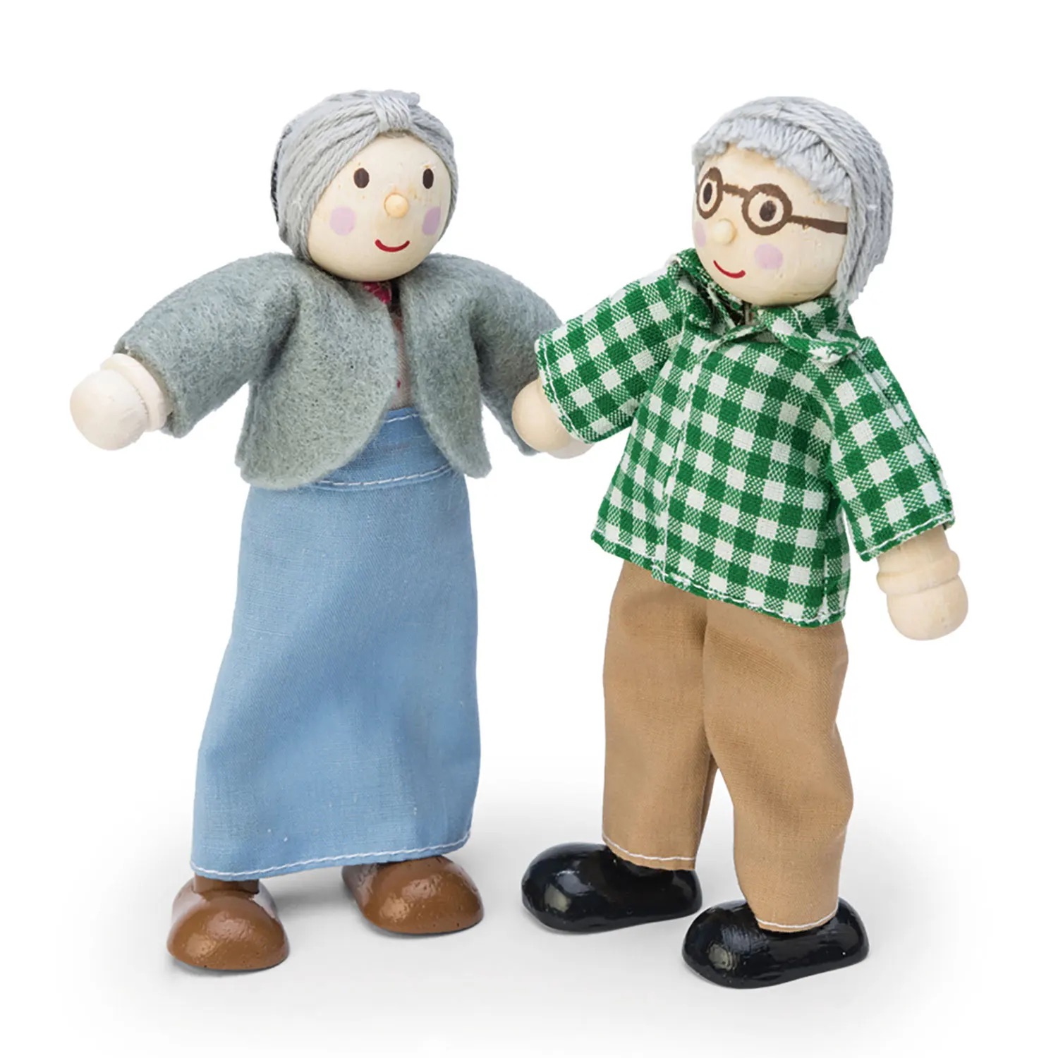 Oma und Opa in liebevoll handgefertigten Kleidungsstücken