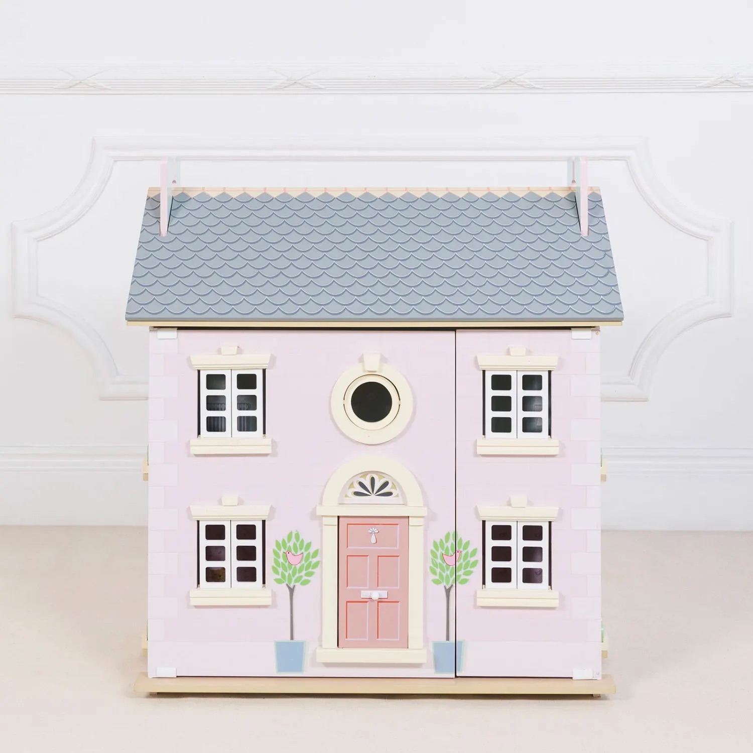 Dieses wunderschöne Puppenhaus besteht aus 3 Etagen mit zu öffnenden Fenstern, einer Treppe und einer Dachbodenleiter