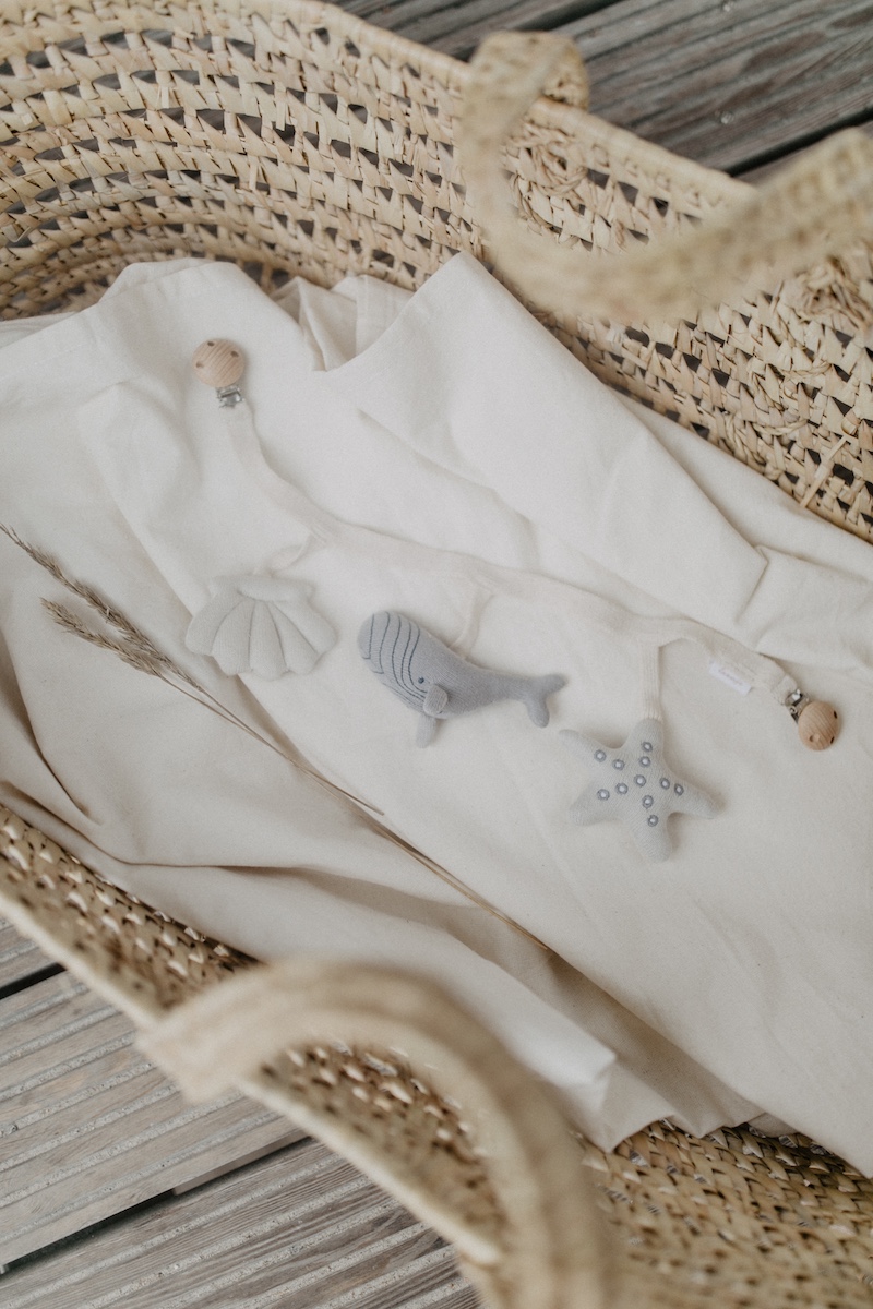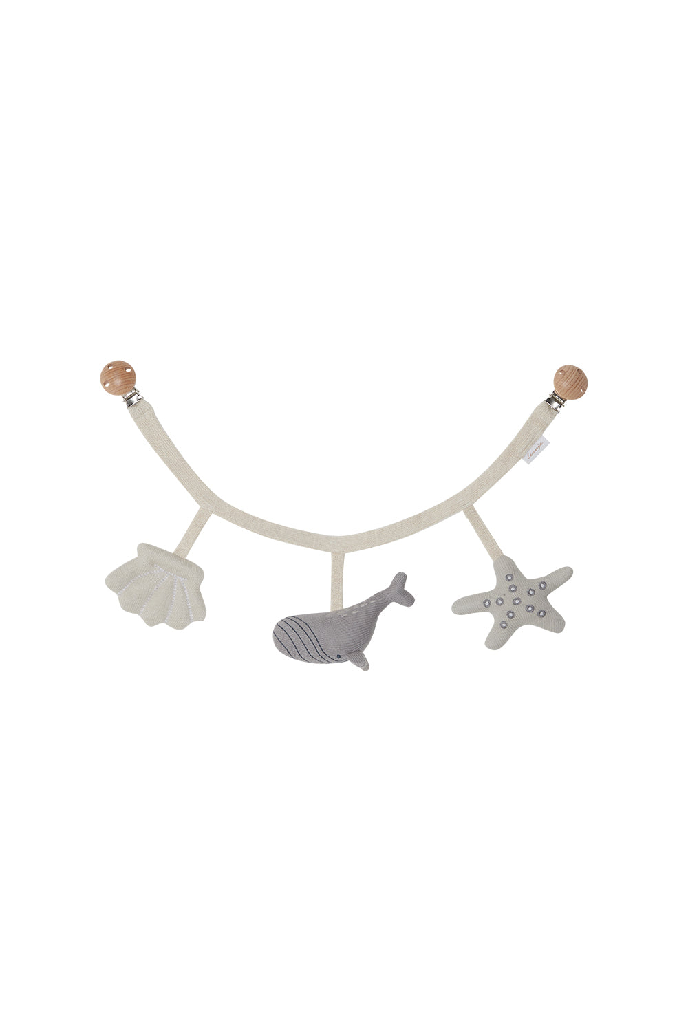 Kinderwagenkette gestrickt mit Wal, Seestern und Muschel