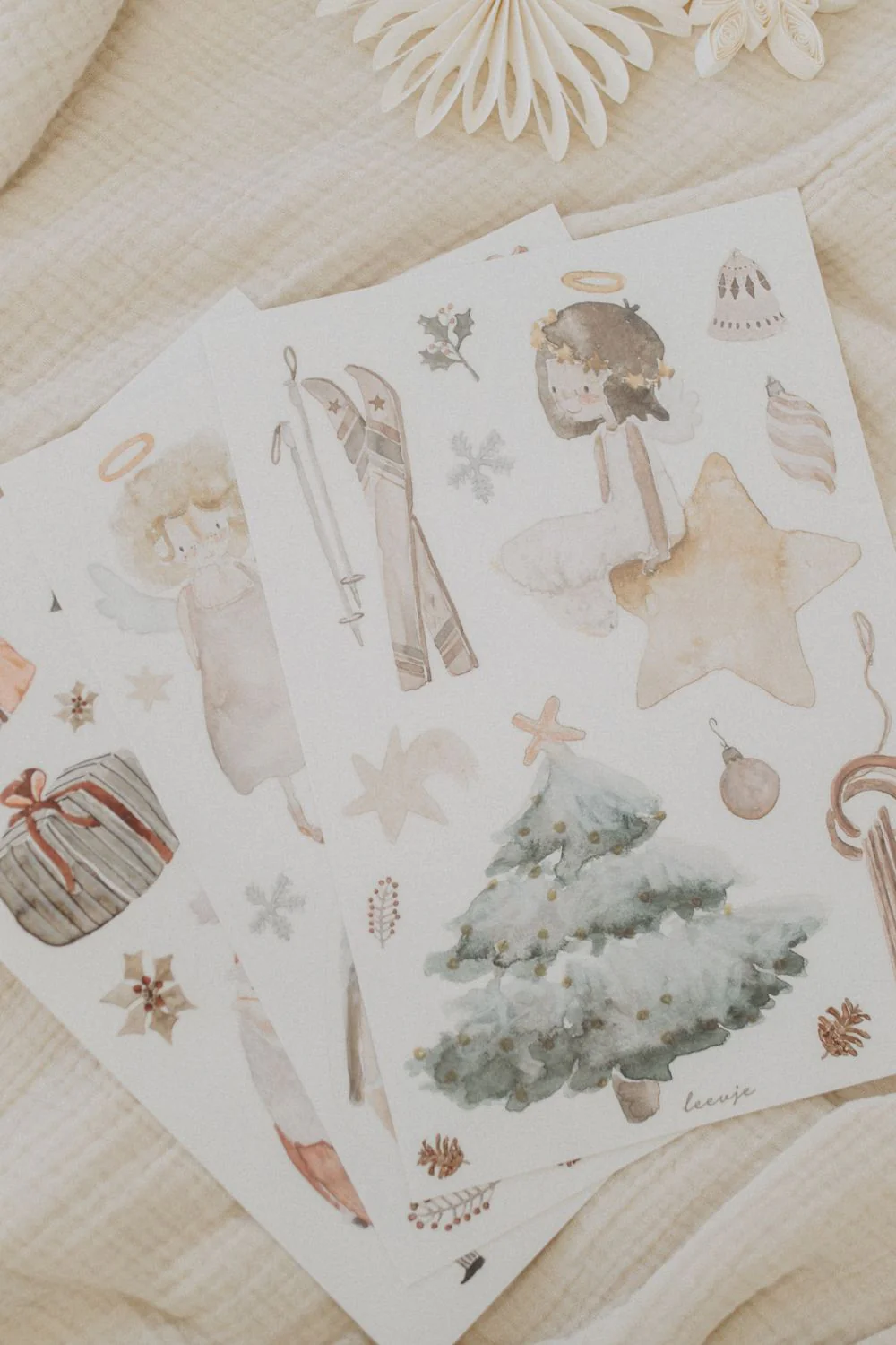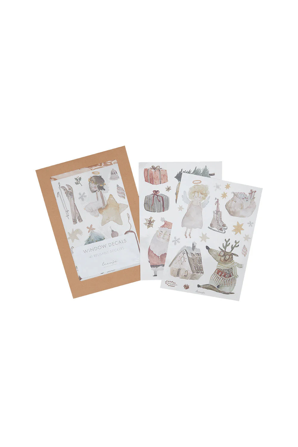 Dieses Set beinhaltet 3 Bögen mit 41 statisch haftenden Aufklebern mit Weihnachtsmotiven, geeignet für Spiegel, Fenster u.a. glatte Flächen