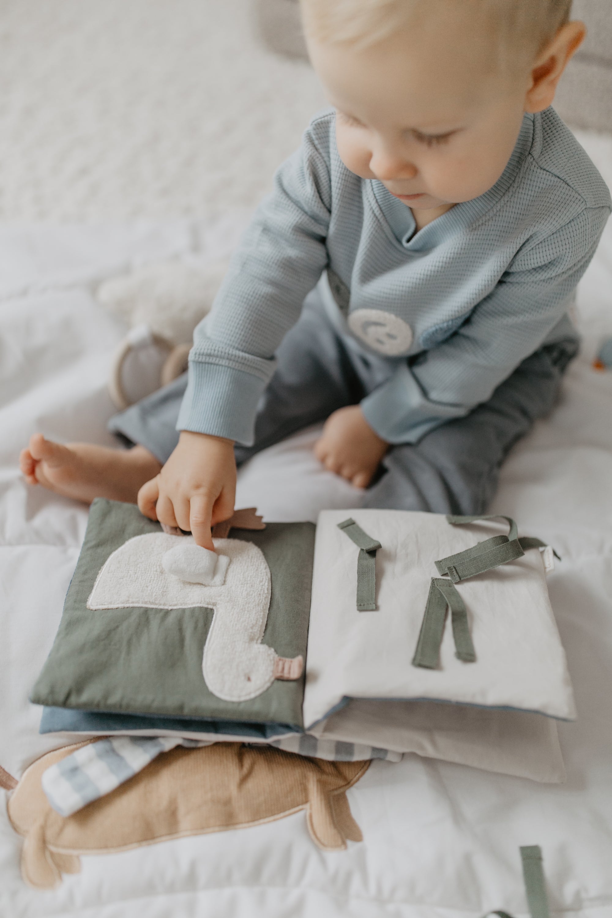 Gepolstertes Knisterbuch mit 8 Seiten, es rasselt, quietscht und knistert im Buch